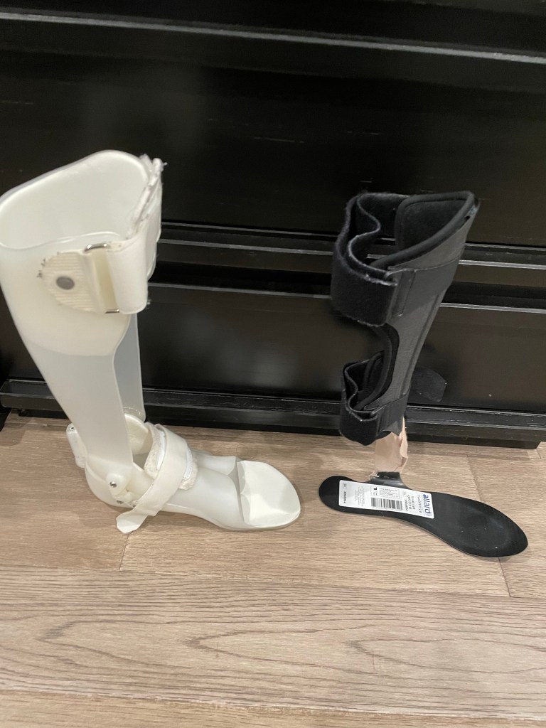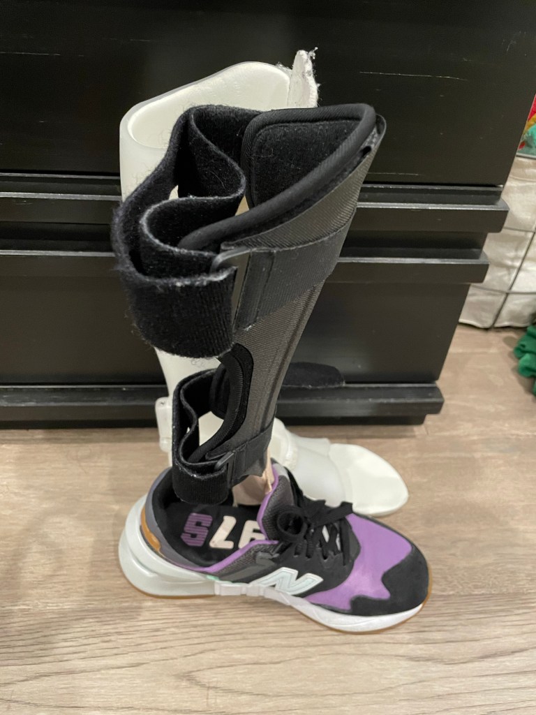 It wasn’t until end of 2021 that my leg and ankle became strong enough to transition to a carbon fiber AFO. The carbon fiber toe off AFO was much more thinner and lighter. They are meant to be worn and fit into the patient’s current shoe while supporting the foot drop and minimal ankle and lower leg support. On December 9, 2021, I was incredibly ecstatic to wear and fit into my own shoes finally!